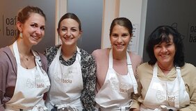 11/2023: Unser Lohnteam hat sich am Freitagnachmittag mit Julia Bachmann von "oafach backa" verabredet, um von ihr jede Menge Tipps & Tricks rund um den perfekten Germteig, die richtige Würzung und Zutatenauswahl für das Gebäck sowie Anleitungen für besondere Falttechniken des Teigs zu lernen. Vom Laugengebäck bis Kornspitz, vom Walnussbrötle bis zum Mohntörtle wurden an dem Nachmittag verschiedene Backwaren gemeinsam gebacken und natürlich auch verkostet. Insgesamt hatte das Team einen sehr gemütlichen Nachmittag in vorweihnachtlicher Stimmung mit viel Zeit zum Lachen und Erzählen. Danke auch an Julia für das tolle Programm.