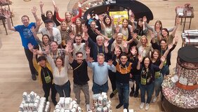 09/2024: Immer am Ende eines jeden Quartals trifft sich die gesamte Firma zur gemeinsamen Teambesprechung, um sich über inhaltliche, personelle, technische und organisatorische Neuerungen in den Teams zu updaten. Jede Teamleitung bereitet dafür eine Präsentation vor, um die News bestmöglich nachvollziehbar zu vermitteln. Zur Auflockerung am Ende des Nachmittags bereiten immer zwei Personen ein sogenanntes 5-Minuten-Fenster vor, in dem alle zum Mitmachen und Aktiv-Werden animiert werden sollen. Von Papierflieger-Weitflug, Quizzes u.a. "1,2 oder 3…?", einem Massageworkshop bis hin zum Play-Mais-Kontest haben wir schon einige Aktionen erlebt. Der Spaß und das Teambuilding kommen dabei nie zu kurz! Wir sind schon gespannt auf die nächste Teamsitzung im Dezember!